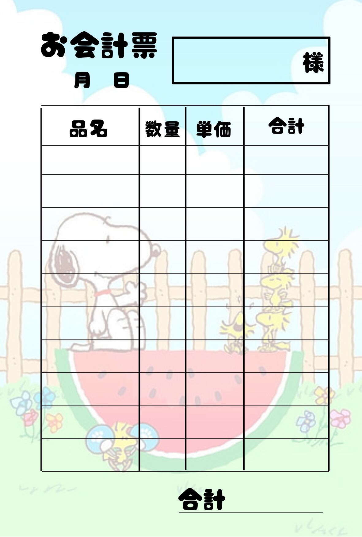 お会計表